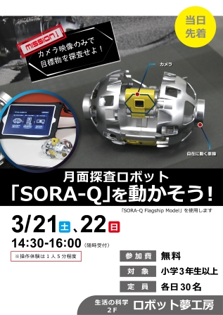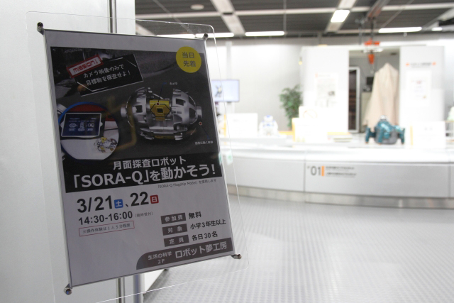 本日、生活の科学2階「ロボット夢工房」にて、SORA-Q操作体験イベントを開催しました!