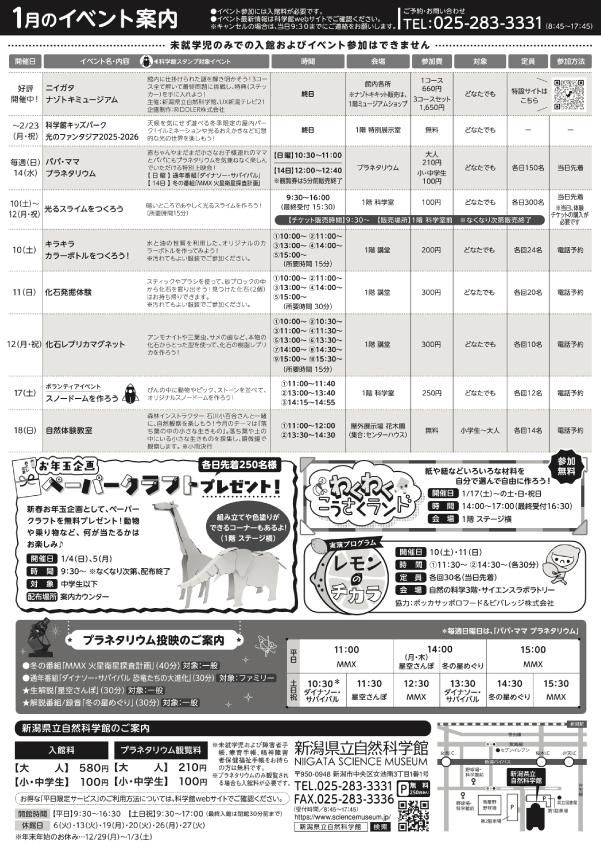 ・1月4日(日)、5日(月)各日先着250名様(中学生以下)に「ペーパークラフト無料配布」します!