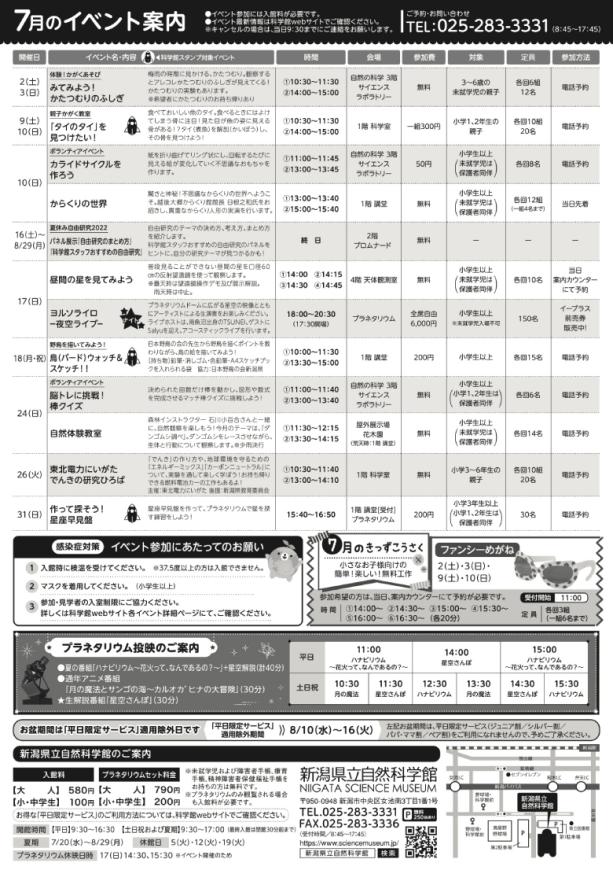 ■お断り■ 新型コロナウイルスの影響に伴い、イベントが中止・延期になる場合があります。最新の情報は科学館webサイトにてご確認をお願いします。