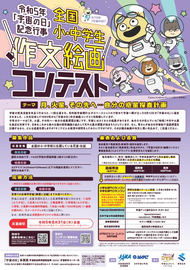 2023/7/2 「宇宙の日」全国小・中学生絵画コンテスト作品募集(2023)